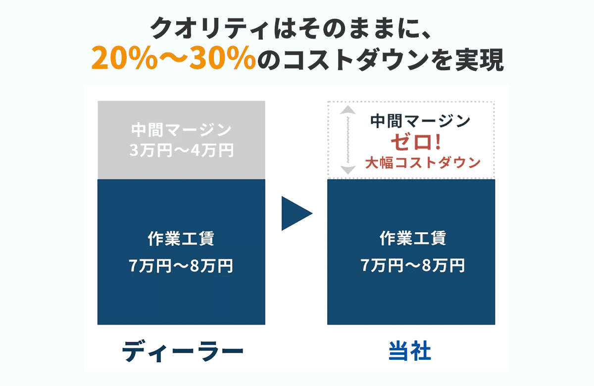 carcraft LUCKYPOOL(カークラフトラッキープール)では受付業務から施工まで一貫して対応しておりますので、その分お値段を抑えられます。